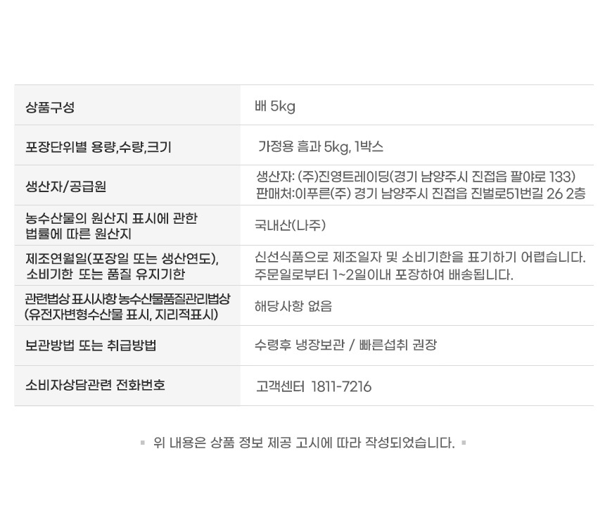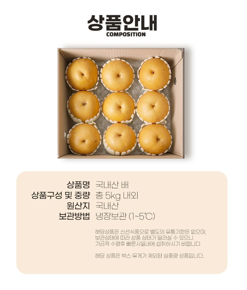 제품 구성 나주 배(신고) 가정용 5kg 6-13과